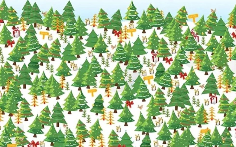 Në ilustrim ndodhen mbi 150 pemë Krishtlindjesh, por vetëm njëra prej tyre ka yllin në majë.