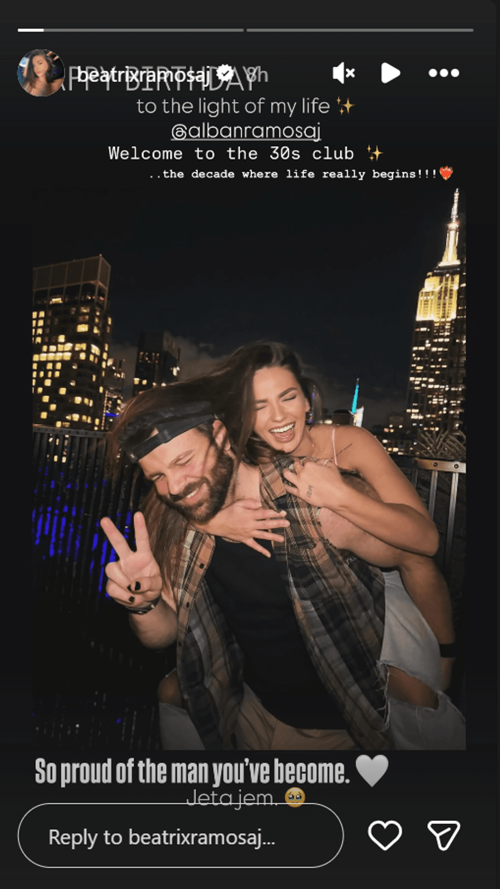 “Urime ditëlindjen, drita e jetës sime. Mirë se erdhe në klubin e të 30-ave… dekada ku jeta fillon me të vërtetë. Shumë krenare për njeriun që je bërë, jeta jem”, ka shkruar Beatrix në një postim në Instastory, teksa ka ndarë edhe një fotografi me të.