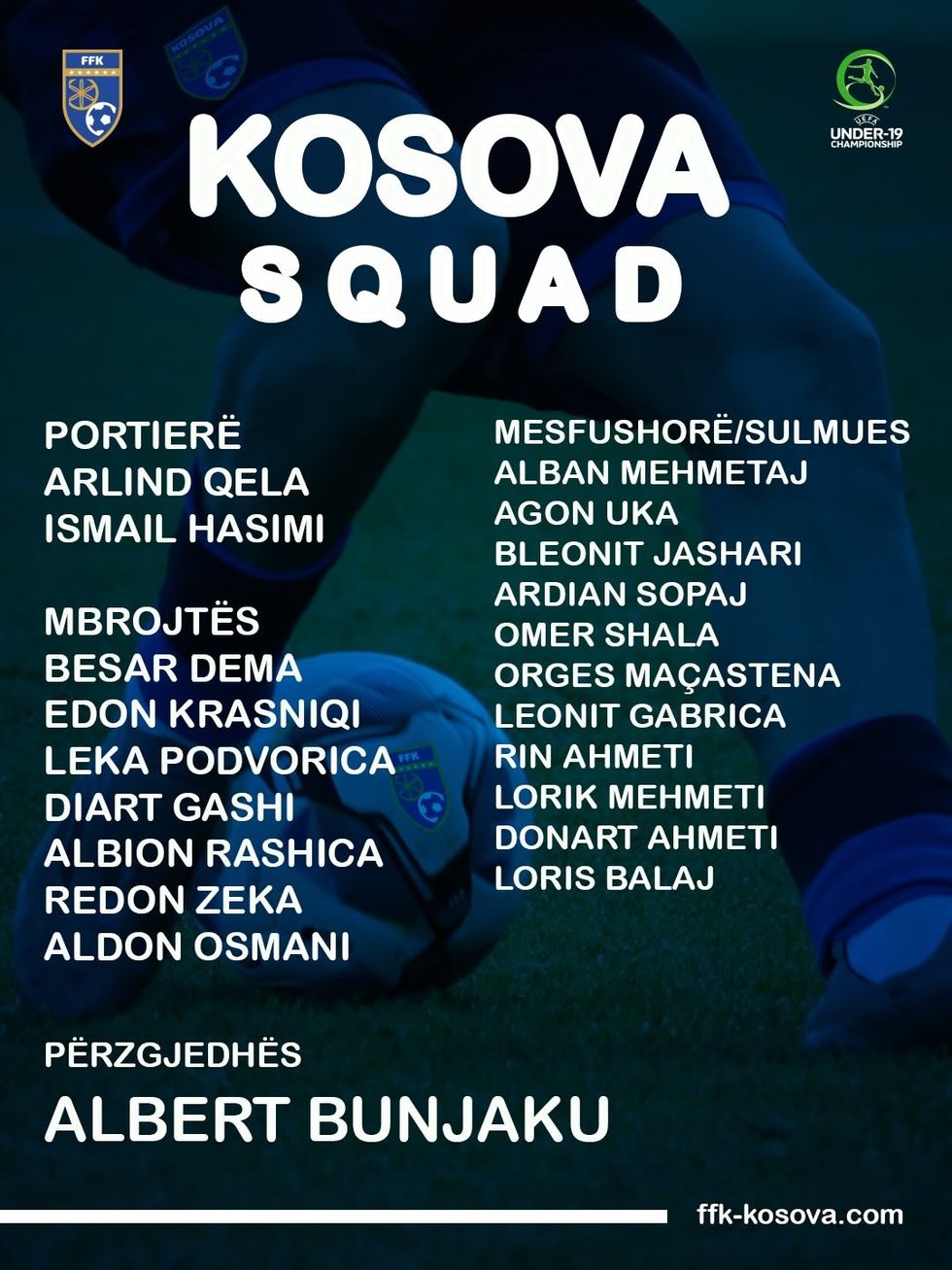 Përzgjedhësi i Kombëtares U19, Albert Bunjaku, ka publikuar listën e futbollistëve të ftuar për muajin mars.