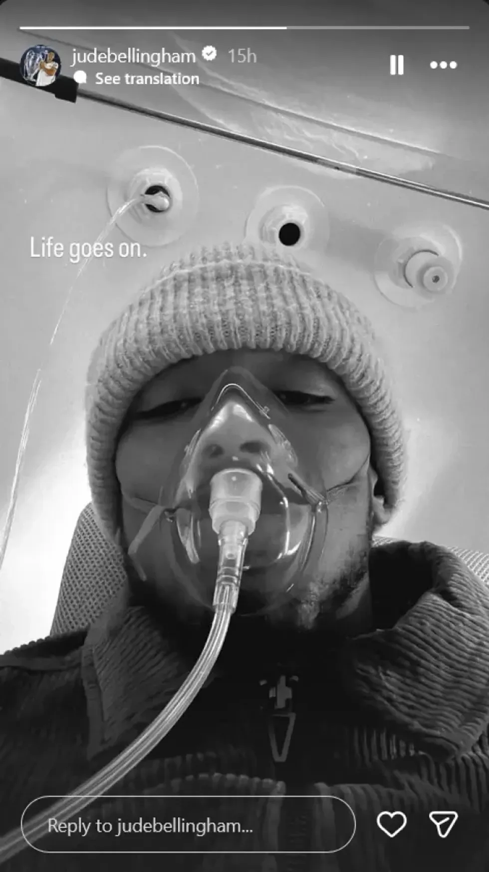 Megjithatë, Bellingham ka shkaktuar shqetësim tek tifozët dhe shkaktoi trazira të mëtejshme duke postuar foto të vetes duke përdorur një maskë oksigjeni.