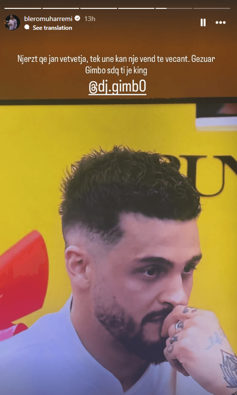 “Njerëzit që janë vetvetja, tek unë kanë një vend të veçantë. Gëzuar Gimbo, je mbret”, ka shkruar ai në InstaStory.