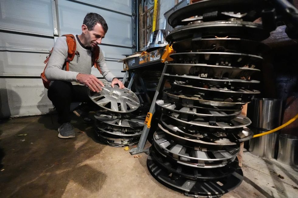 54 vjeçari, thotë se nuk mund ta shpjegojë tamam, por një ditë, ndërsa ngiste biçikletën në fillim të vitit 2024, vendosi të sillte në shtëpi një kapakë të humbur të rrotave. Që atëherë, ai ka filluar të varë kapakë rrotash që i gjen në çantën e shpinës.