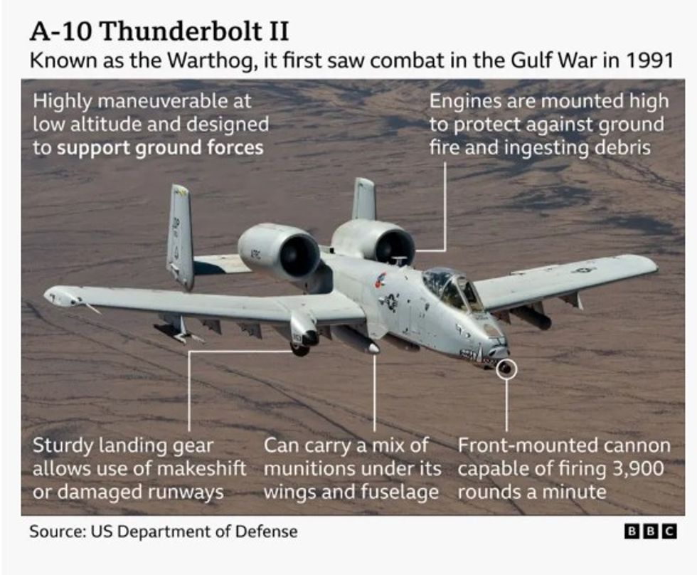 Ai është i pajisur me topin GAU-8 Avenger 30mm, një armë shumë e fuqishme kundër tankeve dhe automjeteve të blinduara, dhe ka aftësi për të mbajtur karikim të madh raketash dhe bombash, çka e bën një mjet të domosdoshëm për operacionet tokësore.