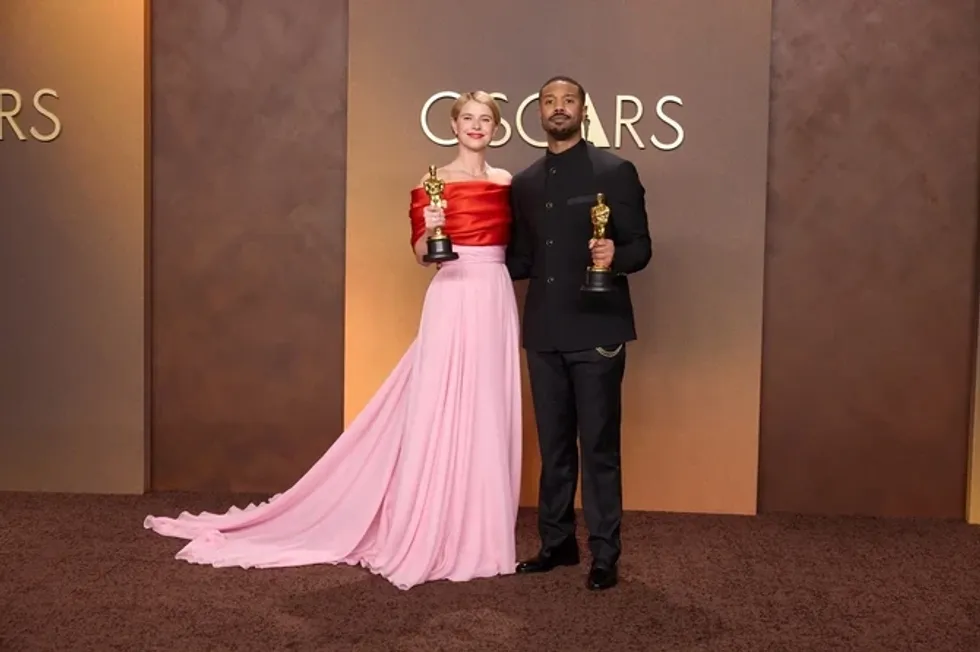 Michael B. Jordan, i cili fitoi Oscarin e parë në karrierë, u paraqit me një kostum Louis Vuitton, duke u renditur ndër burrat më elegantë të mbrëmjes.