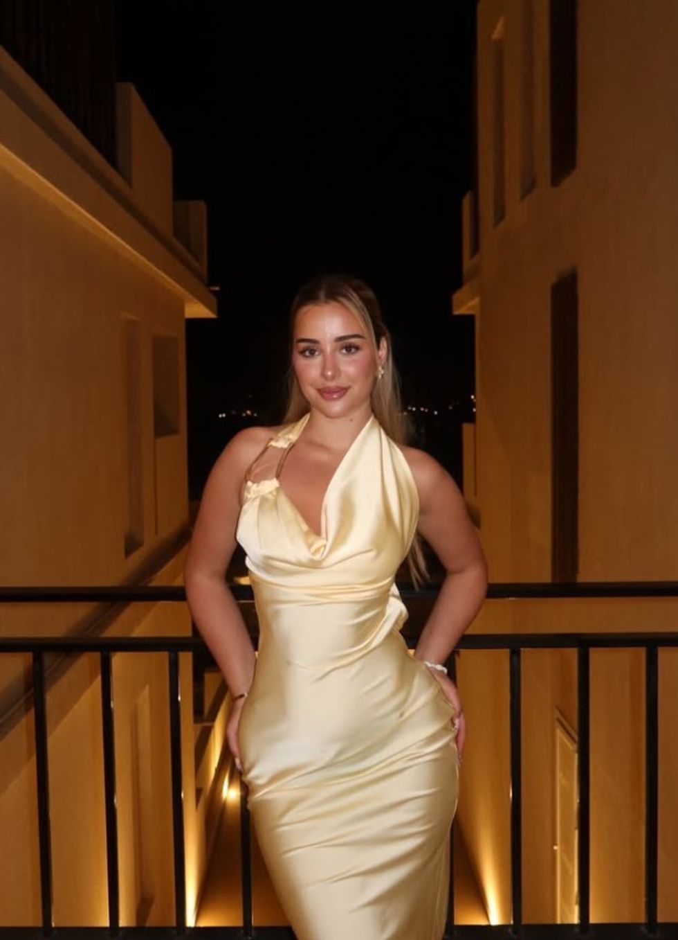 Në imazhet e fundit, Elijona ka tërhequr vëmendje me një paraqitje elegante dhe joshëse, e veshur me një fustan të gjatë sateni në ngjyrë ari.