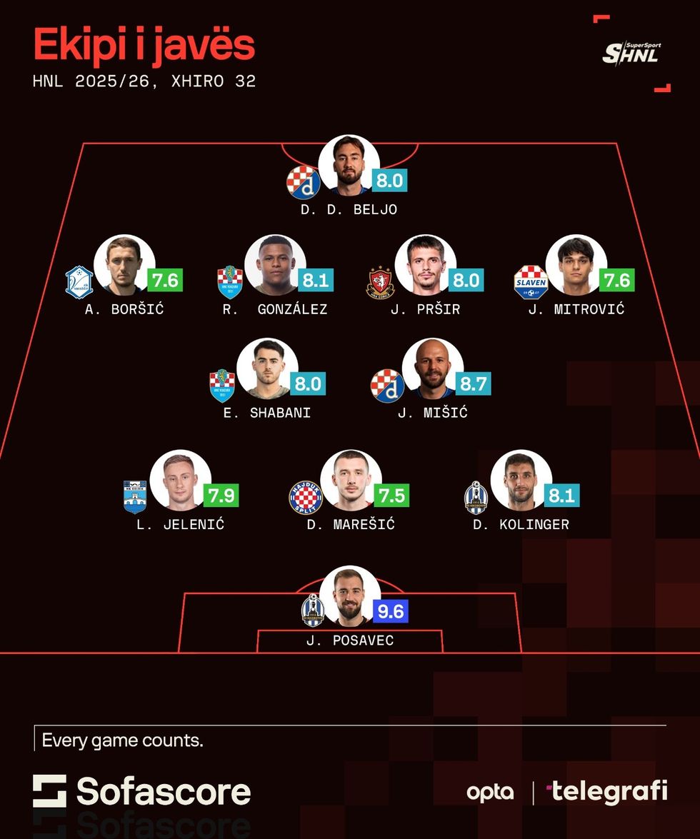 Vendosja e tij në “Ekipin e Javës” nga Sofascore konfirmon formën në rritje dhe ndikimin që po ka në kampionatin elitar kroat. Një paraqitje që nuk kalon pa u vënë re dhe një sinjal i fortë për vazhdimësinë.
