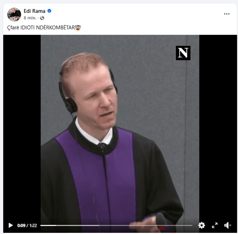 Rama përmes një postimi në rrjetin social në Facebook e ka qujtur prokurorin Halling “Idiot ndërkombëtarë”.