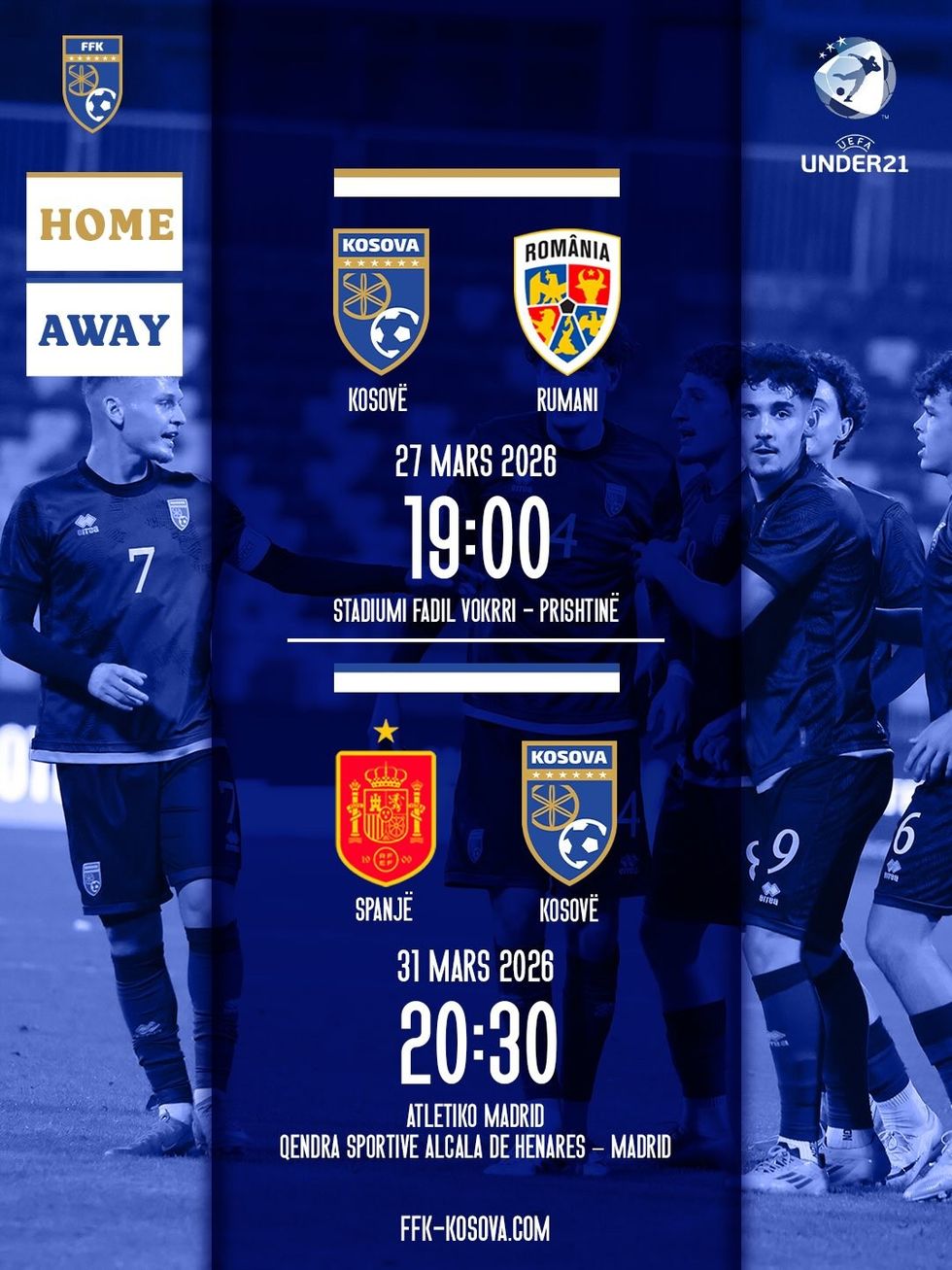 “Dardanët” U21 fillimisht do të përballen me Rumaninë më 27 mars, në stadiumin “Fadil Vokrri”, ku pritet një mbështetje e madhe nga tifozët vendas. Kjo ndeshje konsiderohet mjaft e rëndësishme për ecurinë e Kosovës në Grupin A, pasi një rezultat pozitiv do të rriste ndjeshëm gjasat për një renditje më të mirë në tabelë.