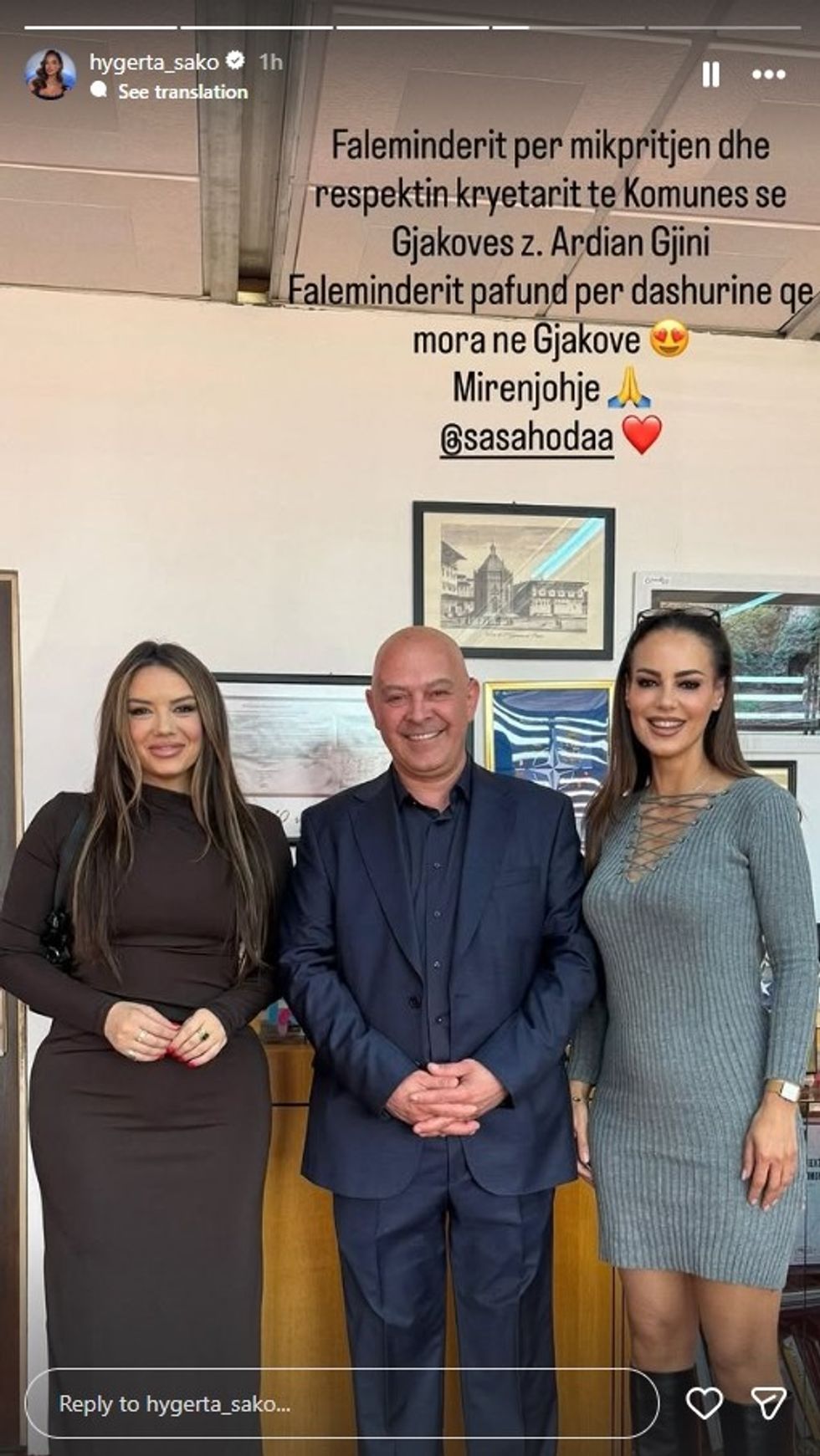 Ishte pikërisht Hygerta Sako ajo që ndau këtë moment me ndjekësit e saj, duke e falënderuar publikisht Gjinin për mikpritjen dhe respektin e treguar.