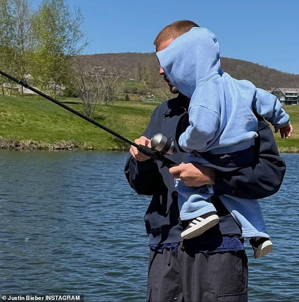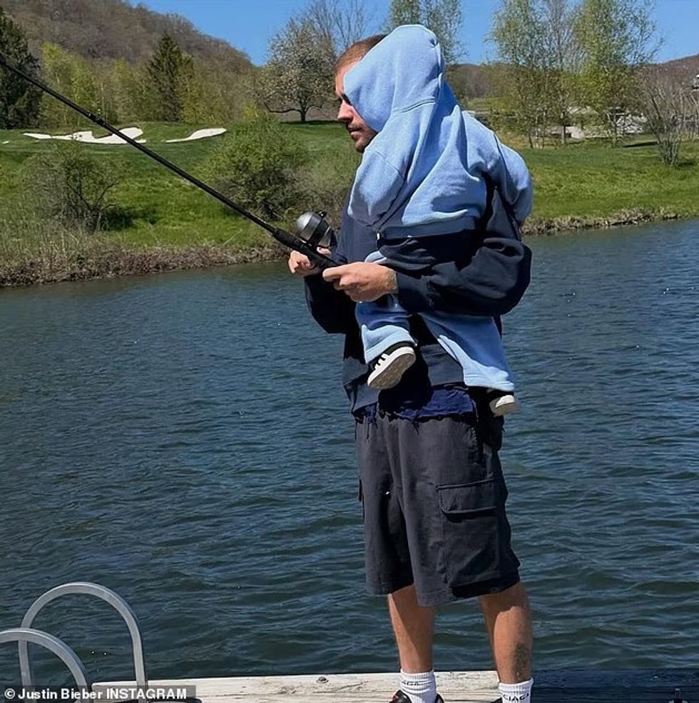 Në imazhe, Bieber shfaqet i ulur në skelë me djalin në krah, ndërsa mban shkopin e peshkimit, shkruan DailyMail.