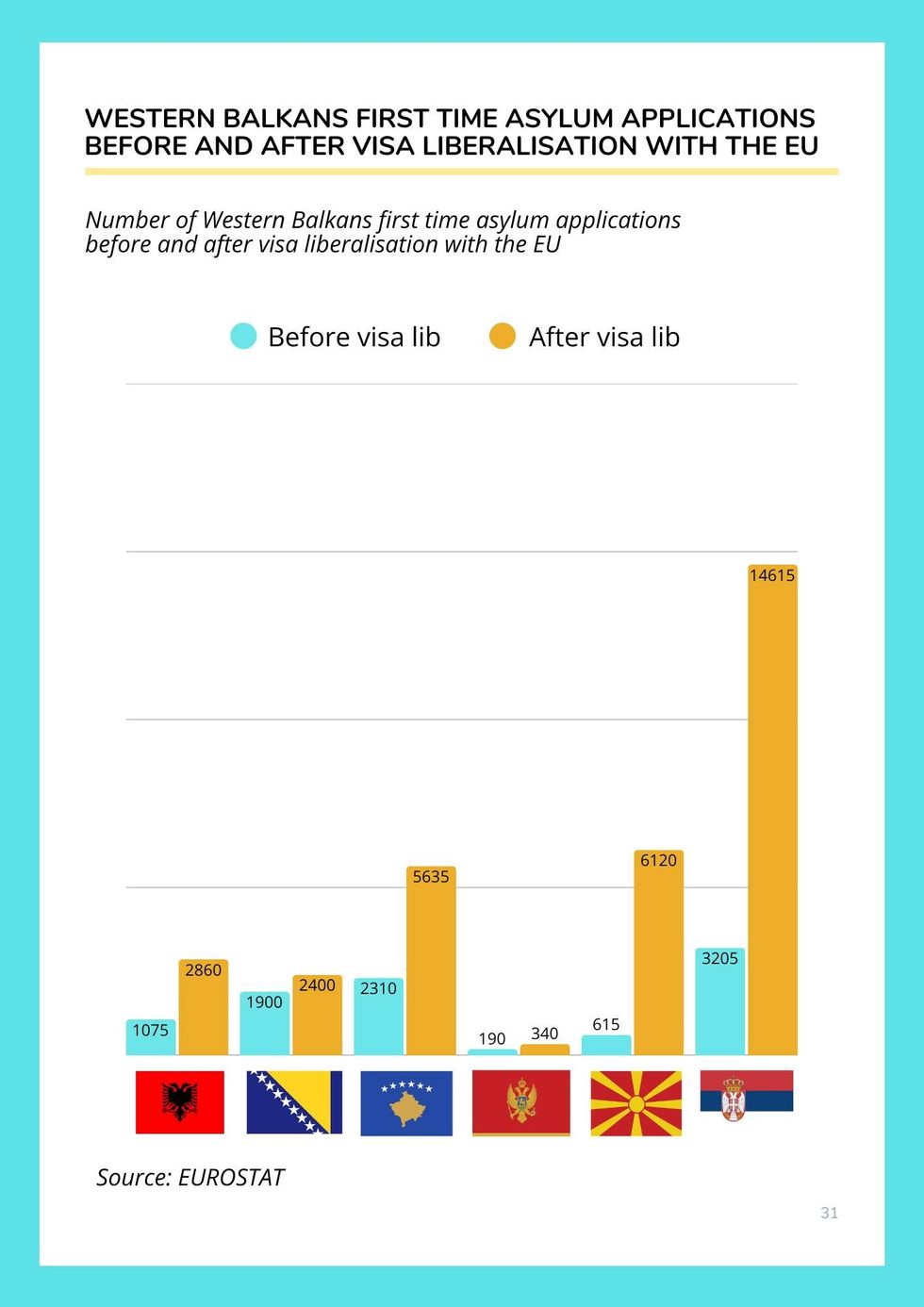 Sipas instituti EPIK, ndonëse kërkesat për azil nga Kosova u rritën për 144% në vitin e parë të liberalizimit të vizave, kjo rritje është në fakt mjaft e ultë nëse krahasohet me rritjen e numrit të azilkërkuesve nga vende të tjera të rajonit në vitin e tyre të parë të liberalizmit të vizave.