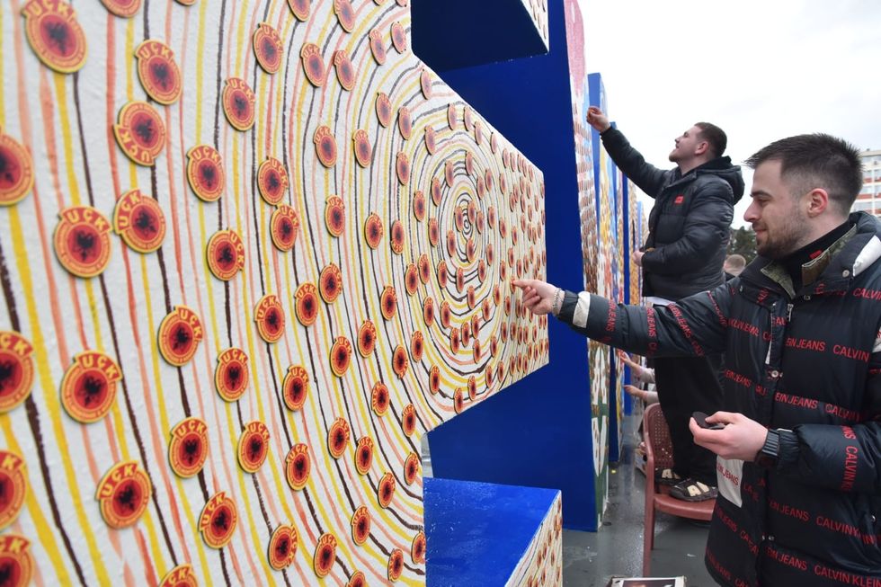 Në një komunikatë të kësaj platforme thuhet se pas “burgosjes” simbolike me rrethoja hekuri dhe mbishkrimit “Kosova e burgosur!”, këtë mëngjes atij iu vendosën edhe 5000 emblema magnetike të UÇK-së.