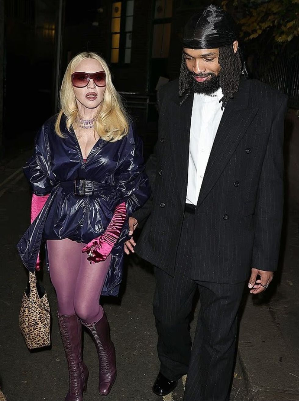 Madonna, 67 vjeçe, dukej elegante me flokë bjonde platini dhe veshje vintage Versace, ndërsa Guy, 55 vjeç, dukej po aq i freskët.