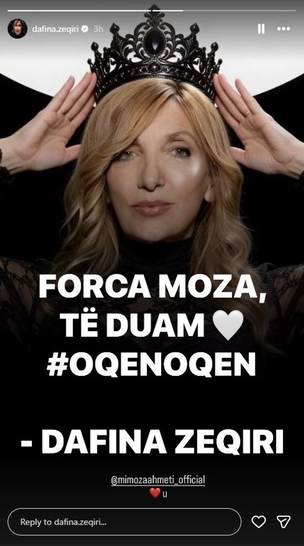 “Forca Moza, të duam”, ka shkruar ajo, duke e shoqëruar postimin me ton mbështetës dhe të drejtpërdrejtë.