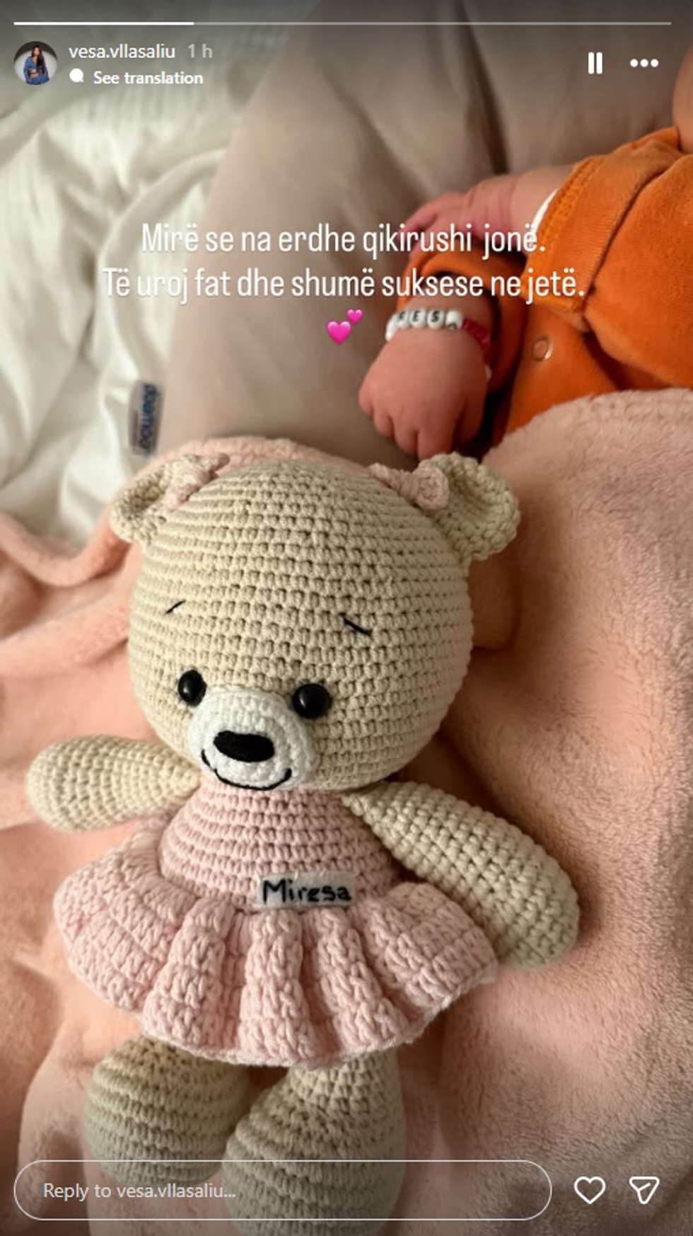 Urimin e bukur e bashkangjiti edhe vetë Vesa, e cila shkroi një mesazh emocionues: