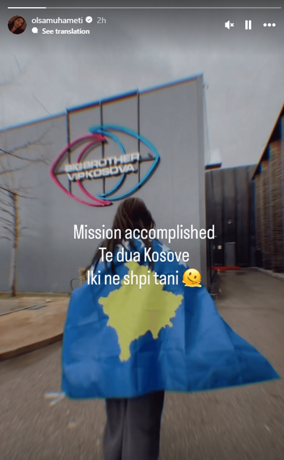 “Mision i kompletuar. Të dua Kosovë. Iki në shtëpi tani”, ka shkruar ajo në një InstaStory.