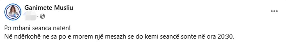 “Po mbani seanca natën! Në ndërkohë ne sapo e morëm një mesazh se do kemi seancë sonte në ora 20:30”, ka shkruar Musliu.