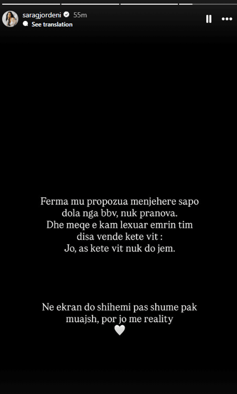 Përmes një postimi në Instagram, ajo zbuloi se i është bërë menjëherë ftesë për t’u bashkuar me edicionin e tretë të reality-show-t, sapo doli nga Big Brother VIP Albania, por vendosi të mos e pranojë.