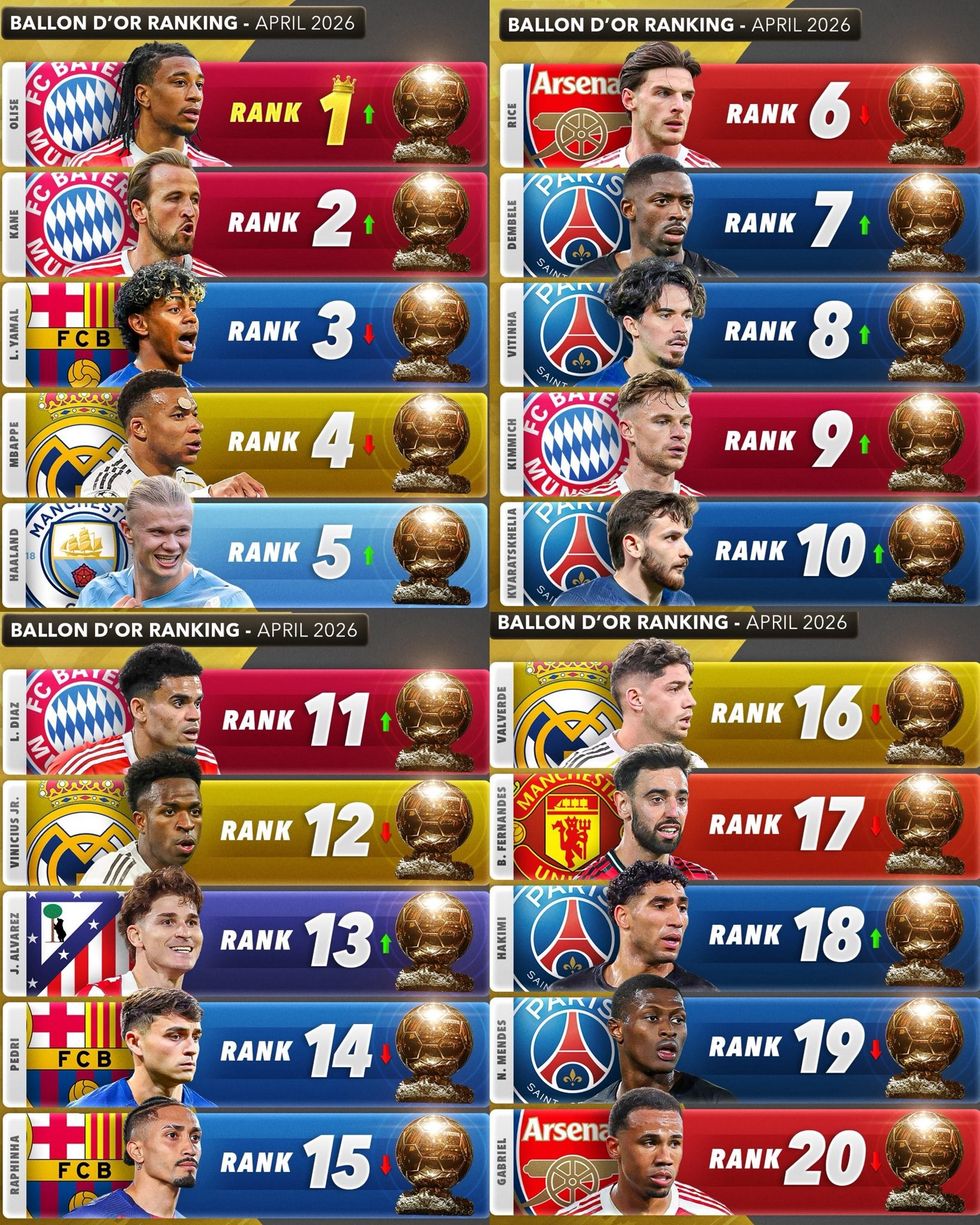 Gara për Topin e Artë 2026 ka hyrë në një fazë të nxehtë, teksa renditja më e fundit për muajin prill 2026 ka sjellë befasia të mëdha dhe diskutime të shumta në botën e futbollit.