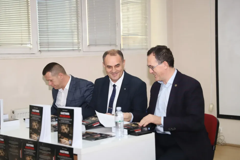 Me praninë e rektorit të UBT-së, Prof. Dr. Edmond Hajrizi, profesorëve, studentëve, studiuesve të medias, si dhe miqve e familjarëve të autorit, u promovua vepra voluminoze “Gazetaria Hulumtuese: Misioni, rreziqet, etika dhe sfidat profesionale”, një libër i dedikuar studentëve të gazetarisë, studiuesve të medias, gazetarëve hulumtues, redaktorëve dhe profesionistëve të përkushtuar që, edhe në rrethana të vështira, mbeten besnikë ndaj së vërtetës dhe interesit publik.
