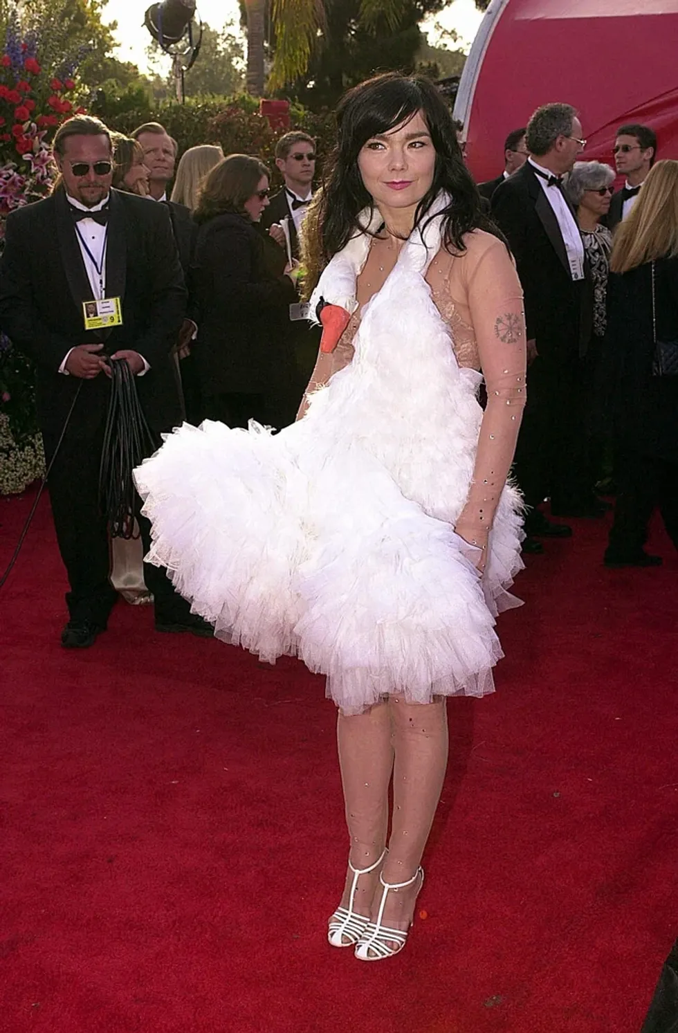 Titullin e fustanit më absurd në histori pa dyshim e mban krijimi i këngëtares Bjork nga viti 2001, ajo kishte veshur një “mjellmë” të vërtetë, koka e së cilës i varej mbi gjoks, ndërsa në tapetin e kuq bëri një skenë duke u shtirur sikur po bënte vezë.