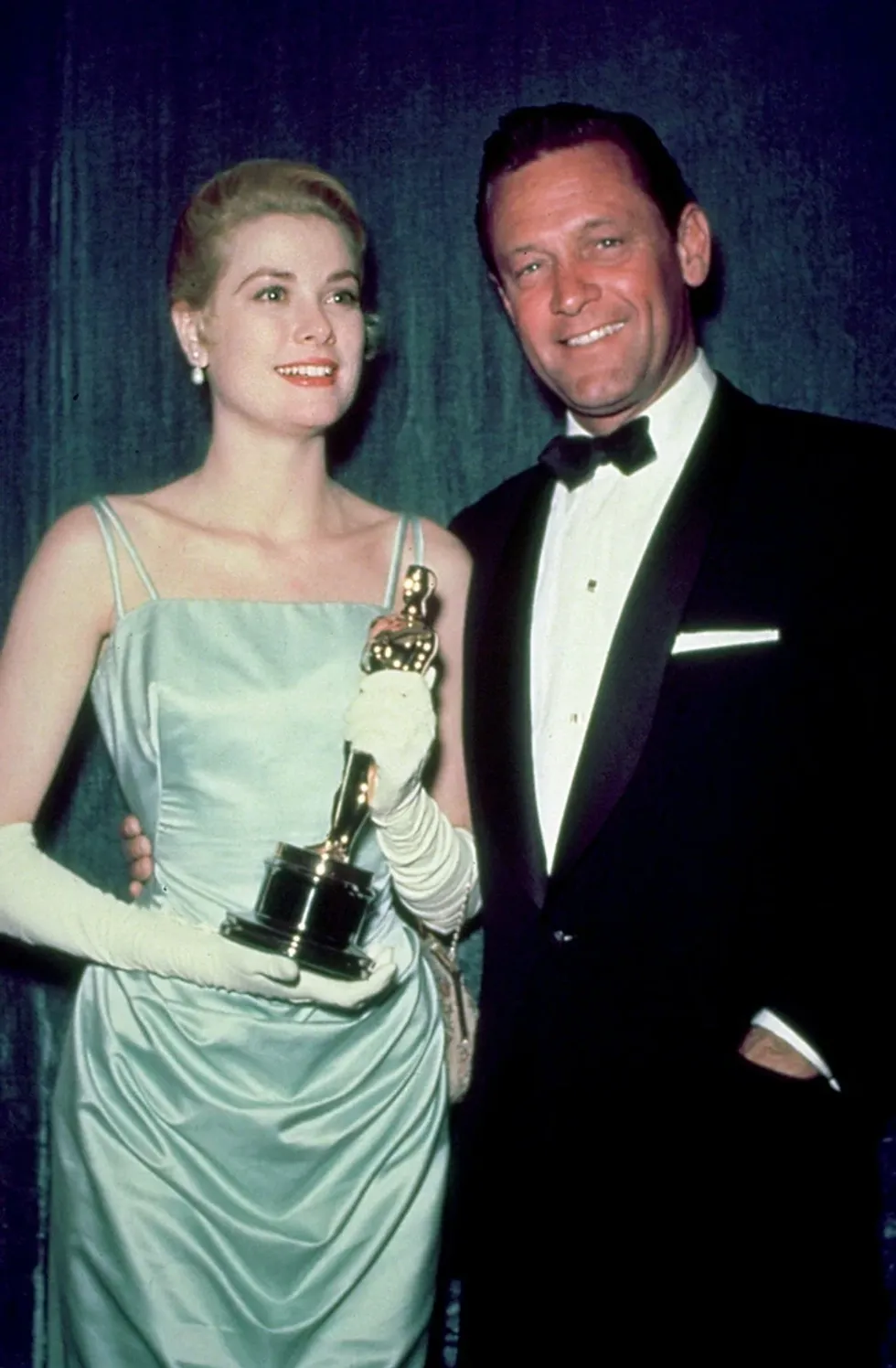 Vetëm një vit më vonë, Grace Kelly veshi një fustan të mrekullueshëm blu-jeshil prej sateni francez me vlerë 4.000 dollarë, duke vendosur rekordin e kohës.