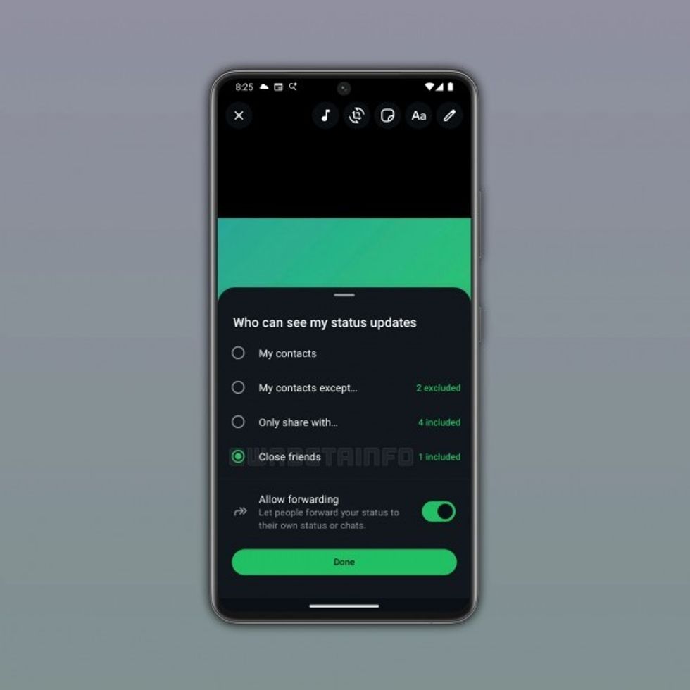 WABetaInfo gjithashtu ndau një pamje të ekranit (të përfshirë më poshtë) që tregon opsionin “Miq të Ngushtë” së bashku me tre opsionet e tjera të privatësisë së statusit që janë aktualisht në dispozicion për përdoruesit e WhatsApp.