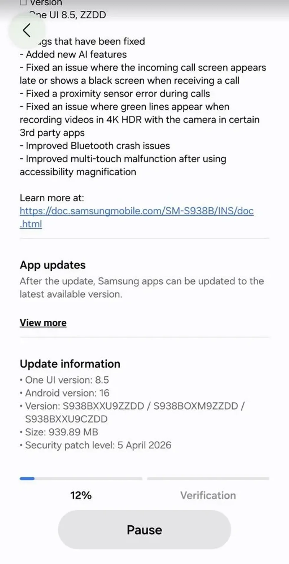 Ka një madhësi shkarkimi mbi 900MB. Mund ta instaloni këtë përditësim vetëm nëse jetoni në katër vendet e përmendura më sipër dhe e keni regjistruar tashmë pajisjen tuaj në Programin One UI 8.5 Beta.