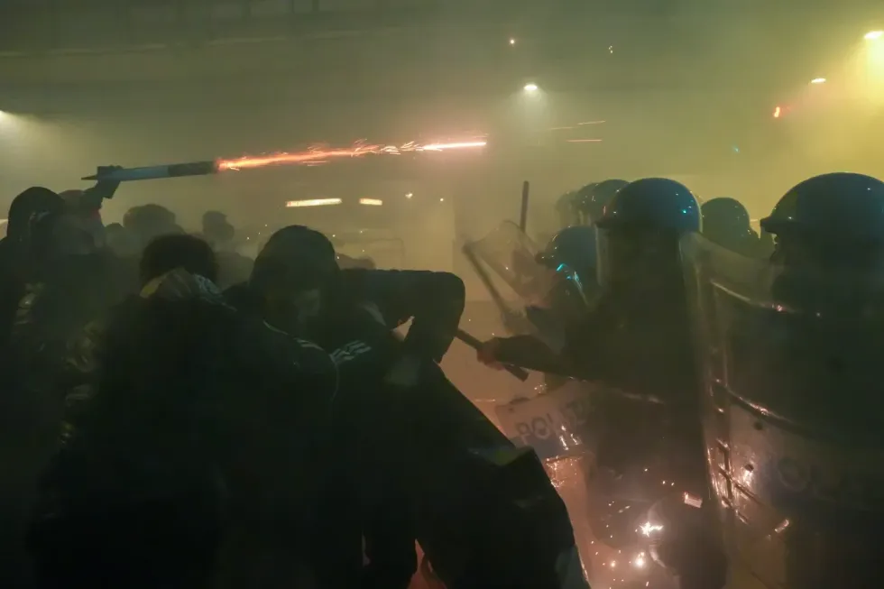 Policia italiane ka qëlluar me gaz lotsjellës dhe topa uji ndaj protestuesve që hodhën fishekzjarrë, bomba tymi dhe shishe pranë një vendi ku zhvillohen Lojërat Olimpike Dimërore.
