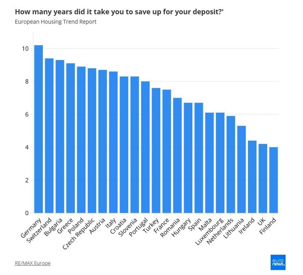 Natyrisht, një pengesë e madhe mbetet edhe depozita fillestare: në Evropë duhen mesatarisht 7.3 vjet për ta kursyer atë, sipas raportit, ndërsa në vende si Gjermania kjo periudhë mund të zgjasë deri në një dekadë të plotë.