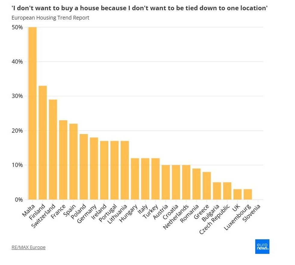 Rreth 16 për qind e atyre që preferojnë qiranë në vend të blerjes së një shtëpie thonë se e bëjnë këtë për të pasur lirinë të lëvizin kurdo dhe kudo që dëshirojnë.