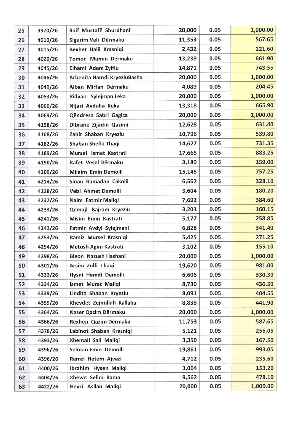 Pagesat janë kalkuluar mbi bazën e sasisë së qumështit të dorëzuar, me një çmim prej 0.05 euro për litër. Shumat e përfituara nga fermerët variojnë nga mbi 100 euro deri në 1,000 euro, në varësi të volumit të prodhimit.