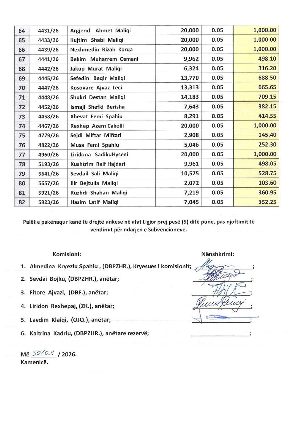 Komuna e Kamenicës ka bërë publike listën e përfituesve të subvencioneve për fermerët prodhues të qumështit për gjashtëmujorin e dytë të vitit 2025 (korrik–dhjetor).