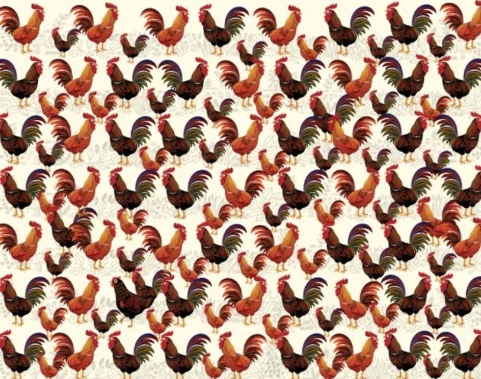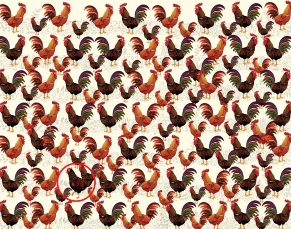 Në foto paraqiten disa gjela, mes të cilëve është fshehur një pulë që vështirë dallohet në shikim të parë.