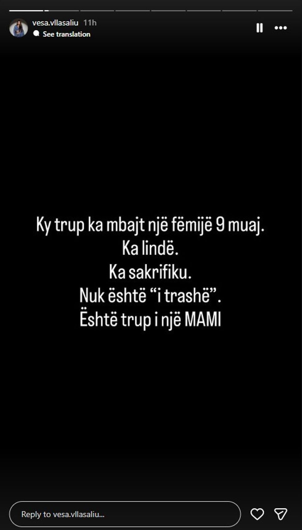 “Ky trup ka mbajtur një fëmijë 9 muaj, ka lindur dhe ka sakrifikuar. Nuk është ‘i trashë’, është trup i një mami”.