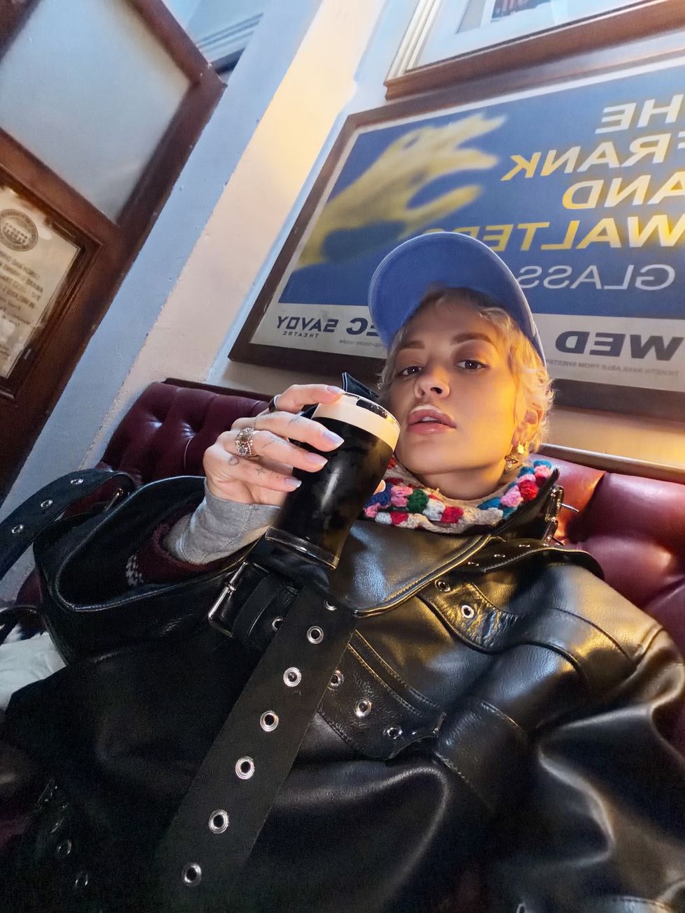 Në foto të tjera të publikuara, Rita shijohej duke pirë një Guinness në një pub, përpara se të provonte një hot-dog me një mikeshë.