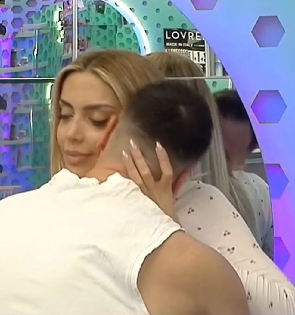 Në pamjet që po qarkullojnë në rrjet, dyshja shihen duke u përqafuar, me Mateon që e tërheq Brikenën drejt vetes për një përqafim.