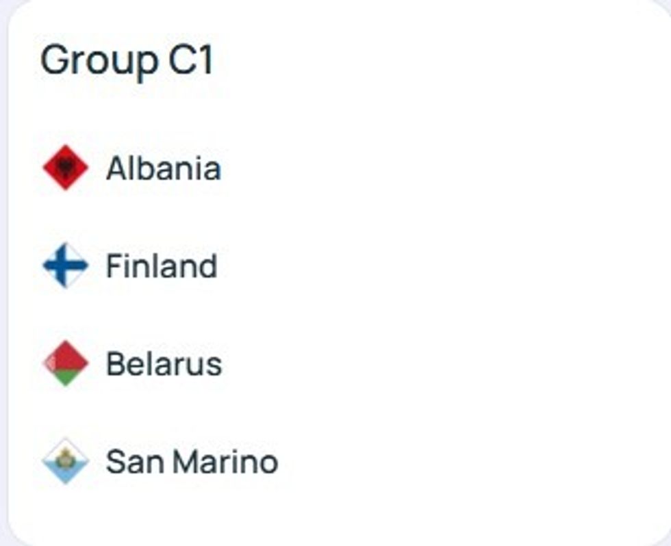 Në grup me Shqipërinë, janë kombëtaret si Finlanda, Bjellorusia dhe San Marino.