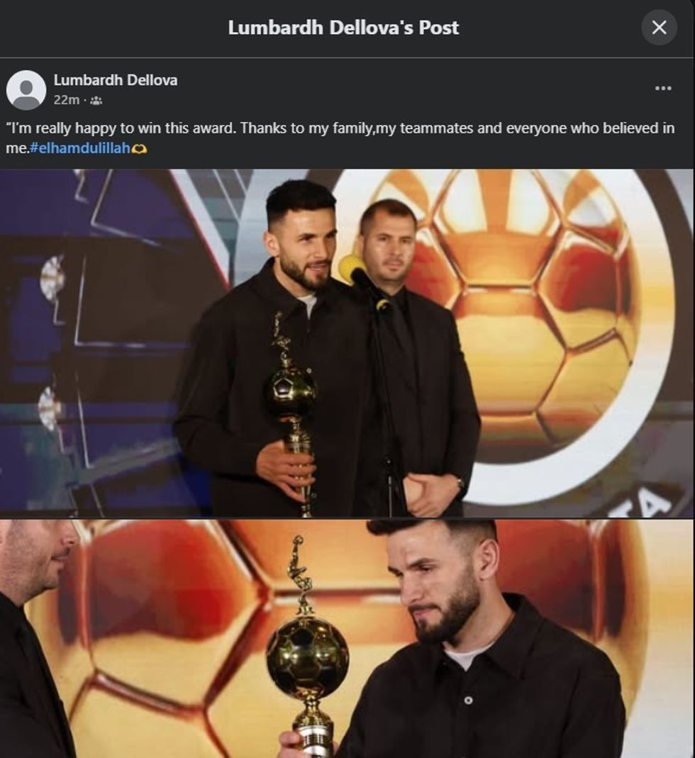 “Jam shumë i lumtur që e kam fituar këtë çmim. Faleminderit familjes, bashkëlojtarëve dhe të gjithëve që besuan tek unë”, shkroi ai ndër të tjera.
