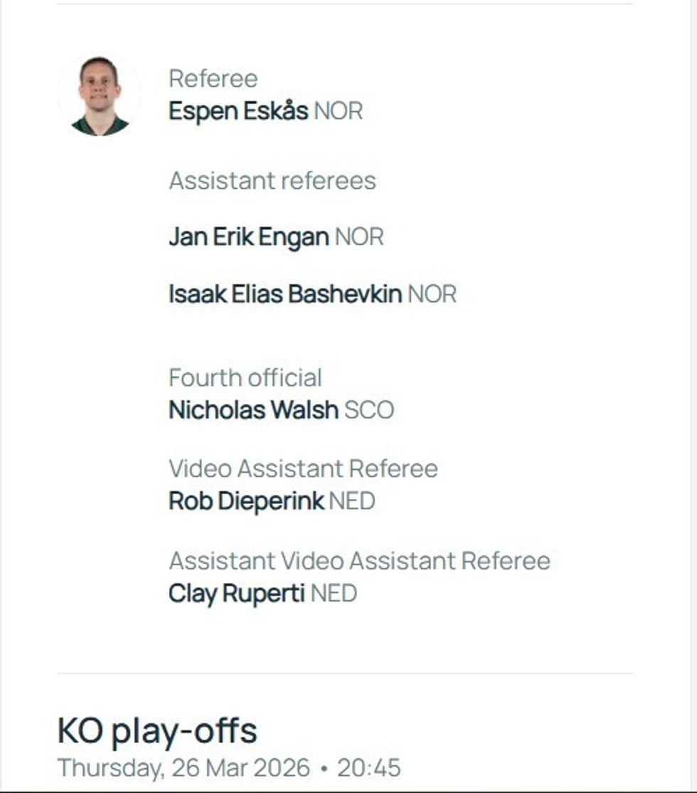 UEFA ka publikuar zyrtarisht ekipin e gjyqtarëve për ndeshjen e rëndësishme të “play-off”-it ku përfshihet Kosova, e cila do të zhvillohet më 26 mars 2026 nga ora 20:45 në Bratislavë ndaj Sllovakisë.