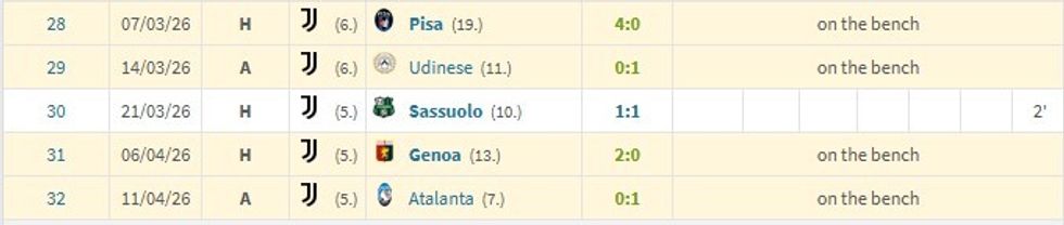 Në pesë ndeshjet e fundit, sulmuesi anësor nga Kosova ka luajtur vetëm dy minuta, një statistikë që flet shumë për rolin e tij aktual në skuadër.